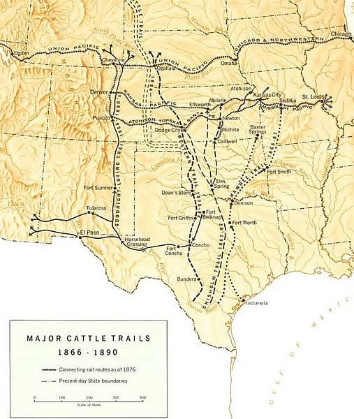 1865 1886 Map of Cattle Drive Trails | Texas history classroom